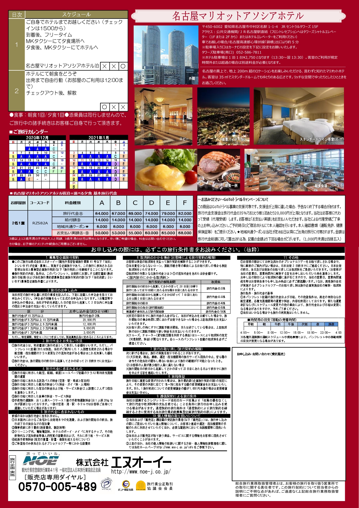 旅行代金カレンダーA 「2名1室」大人2名様の場合